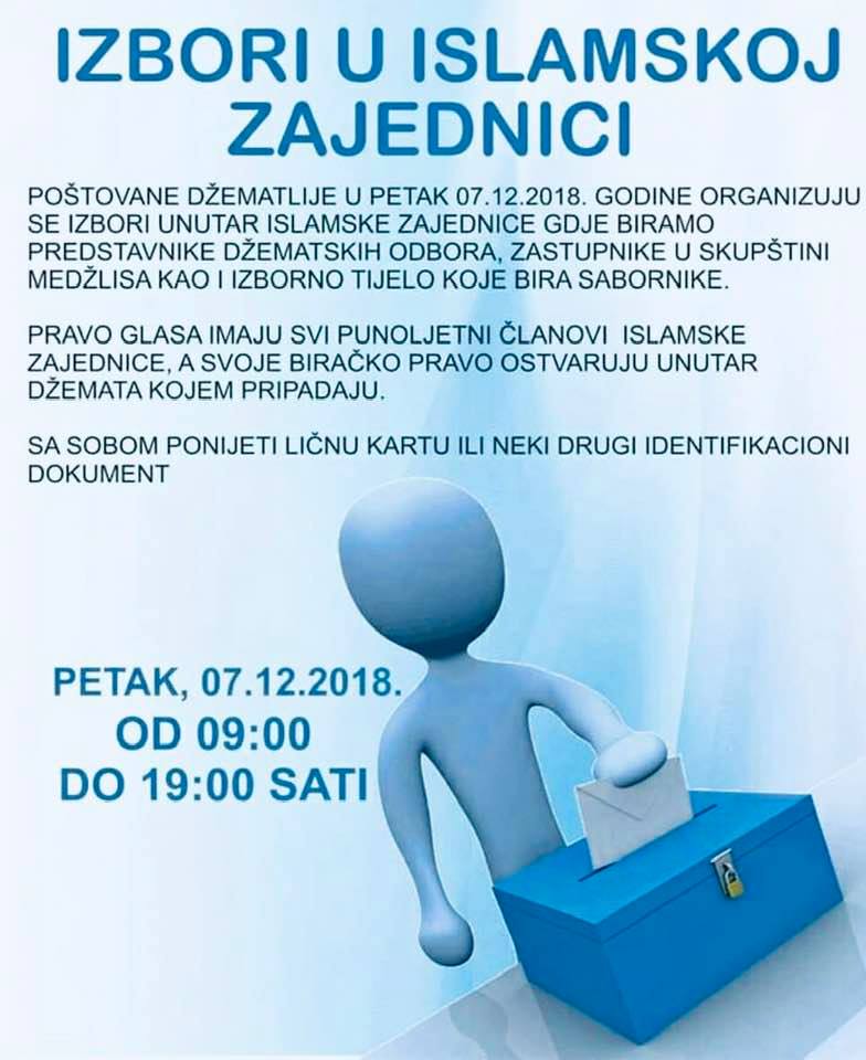 Izbori u Islamskoj Zajednici – 7.12.2018 – biraju se predstavnici dzematskih odbora, Zastupnici u Skupstini medzlisa, kao i izborno tijelo koje bira sabornike….