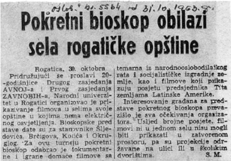 Novinski članci: Pokretni bioskop obilazi sela rogatičke opštine (1963)